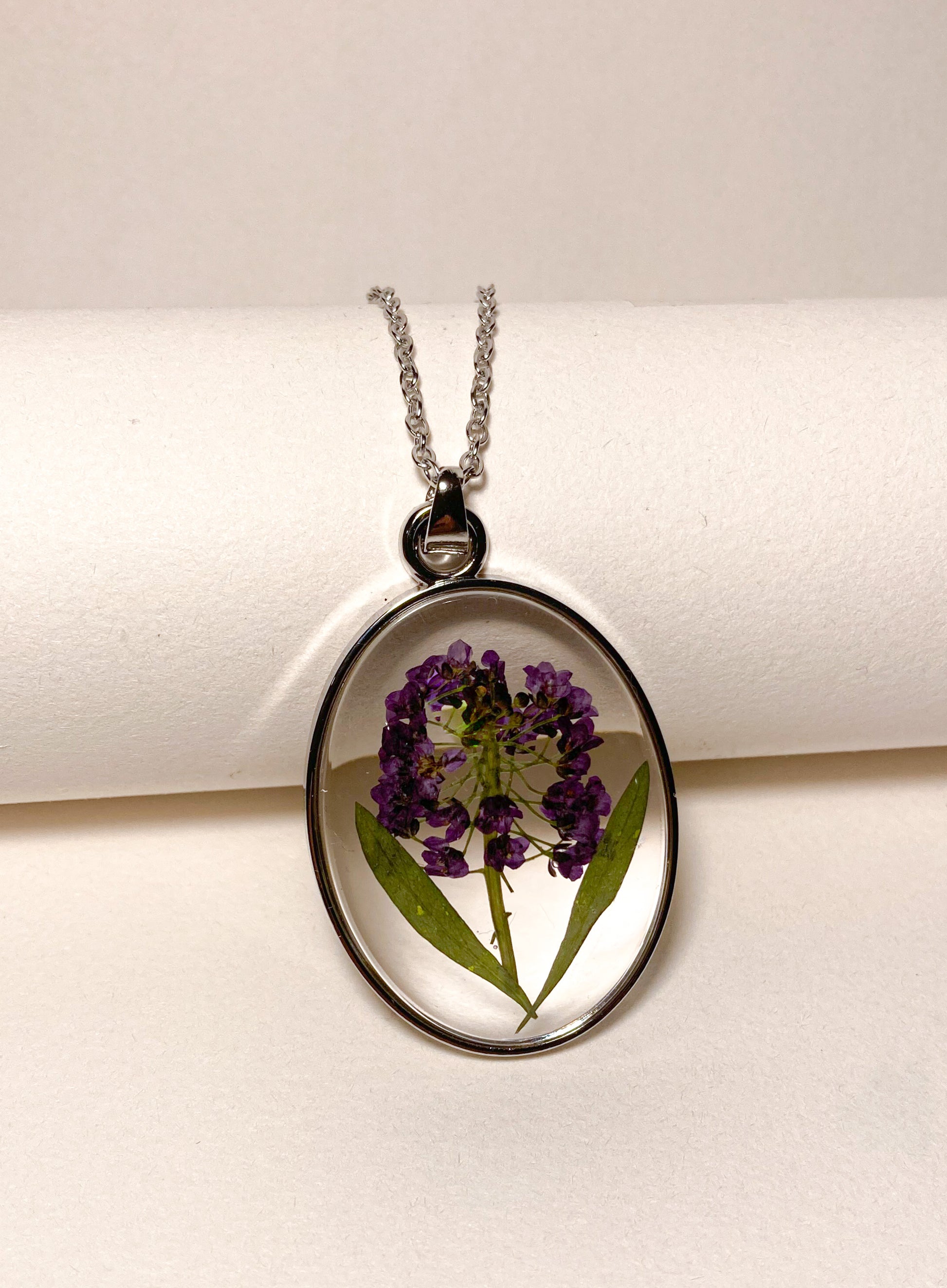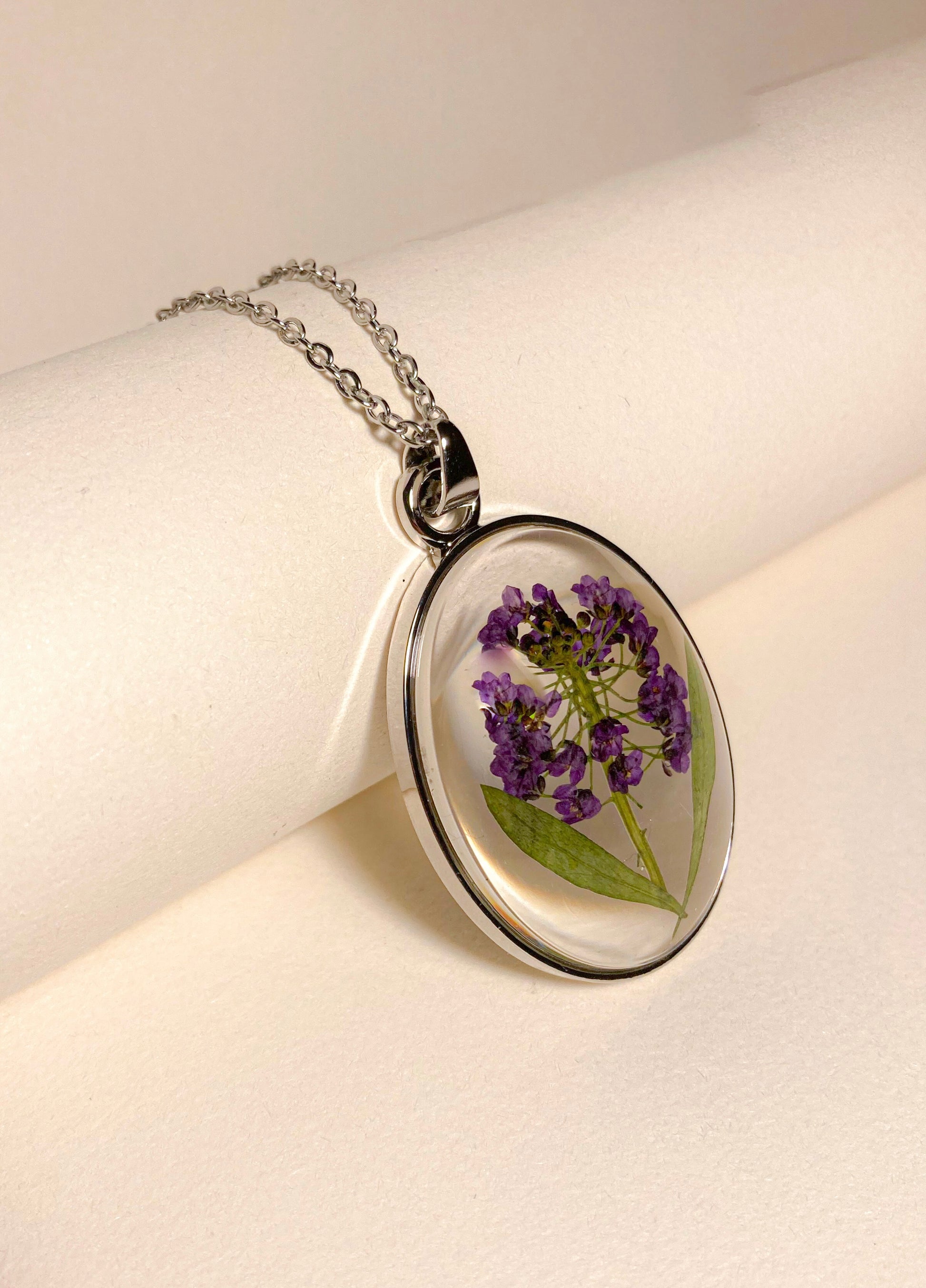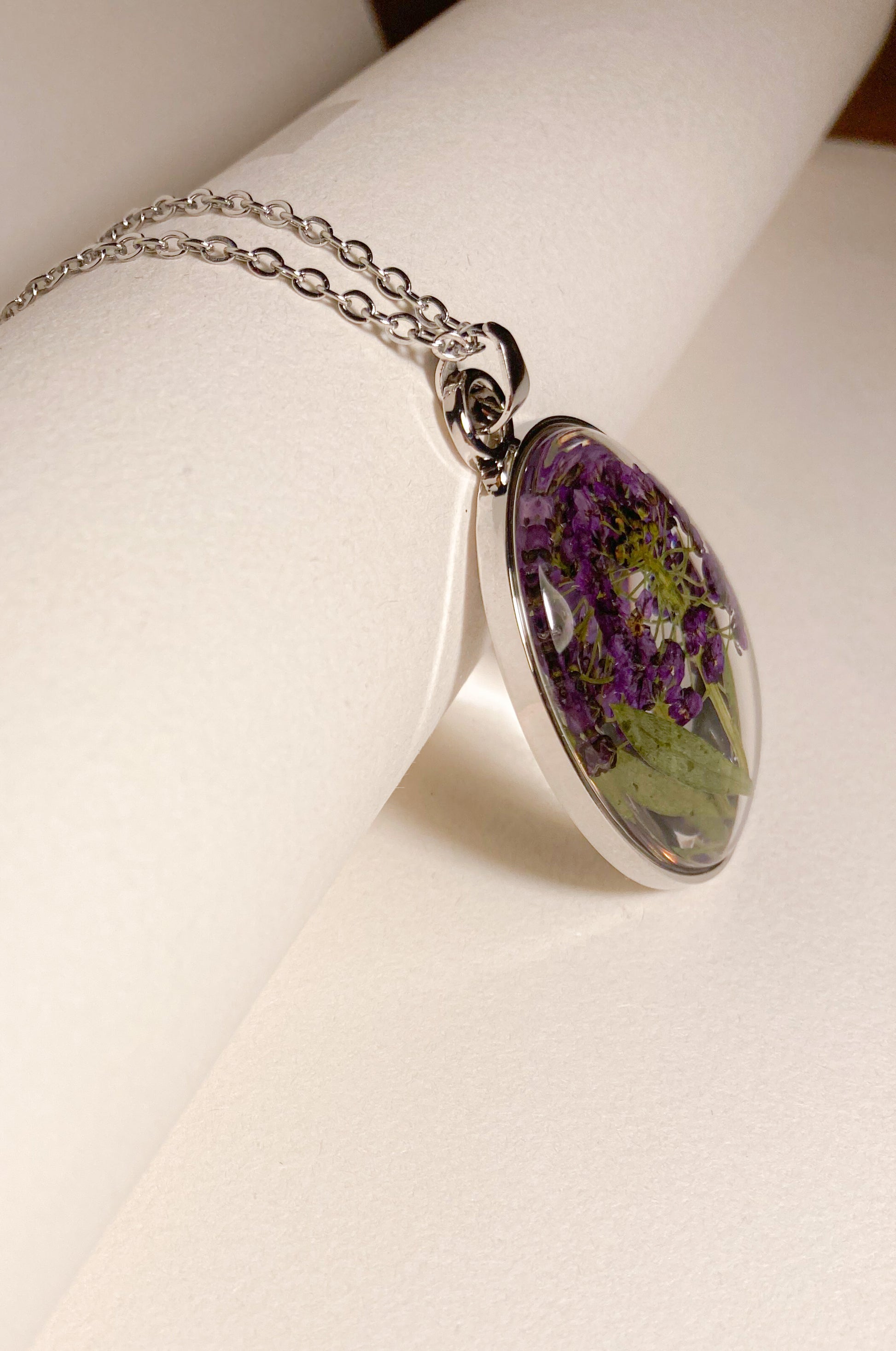 Necklaces with real pressed flowers. Each piece is unique on it's own!